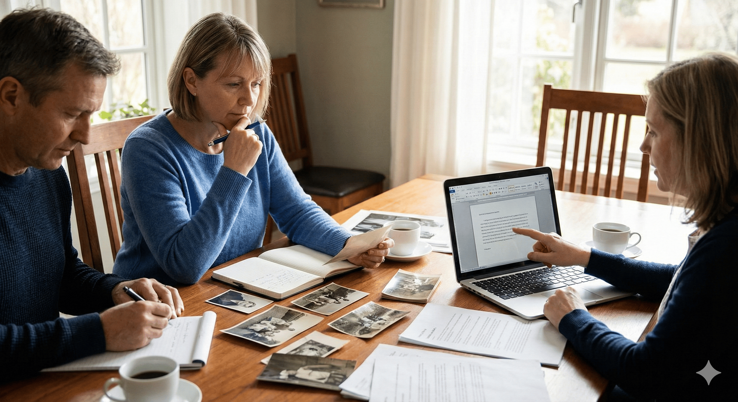 If you can, confirm spellings and dates using a birth or marriage certificate, immigration papers, military records, a résumé or work bio, or old photo albums with captions. A family member who remembers the early years can fill in gaps that no document will.